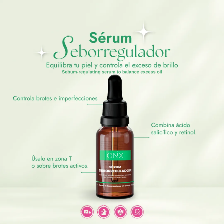 Evitará el exceso de producción de sebo, inflamación, tendencia al acné y acumulación de puntos negros. El Serum Seborregulador Onix ilumina y reafirma la piel al tiempo que aporta hidratación, contrarrestando la producción de grasa y brillo facial.