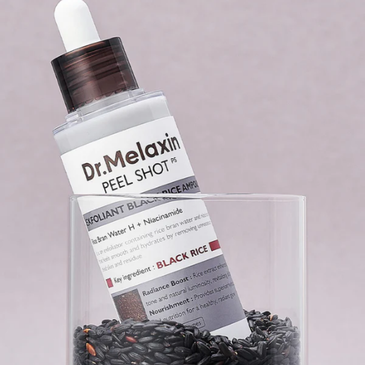 El Dr. Melaxin Peel Shot Glow Black Rice Peeling Ampoule es un exfoliante coreano de uso diario que combina tecnología avanzada y extractos naturales de arroz negro para lograr una piel más suave, luminosa y equilibrada.