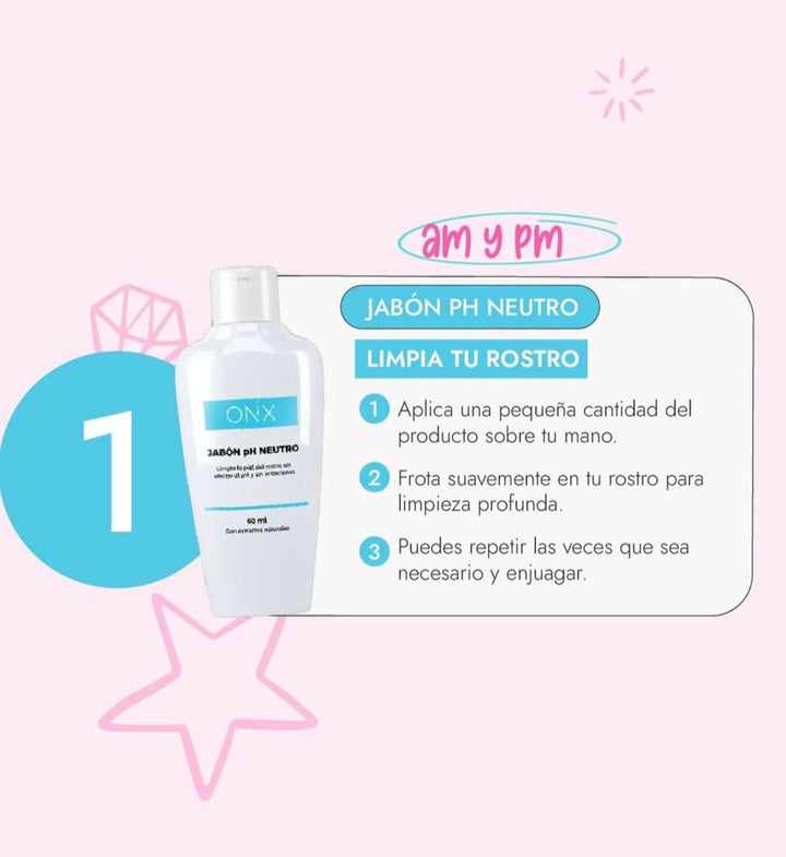 Para obtener los mejores resultados en tu rutina skincare, te recomendamos aplicar el jabón en tu rostro una o dos veces al día, como parte de tu rutina regular de cuidado facial y complementar con la linea de cuidado facial onix.